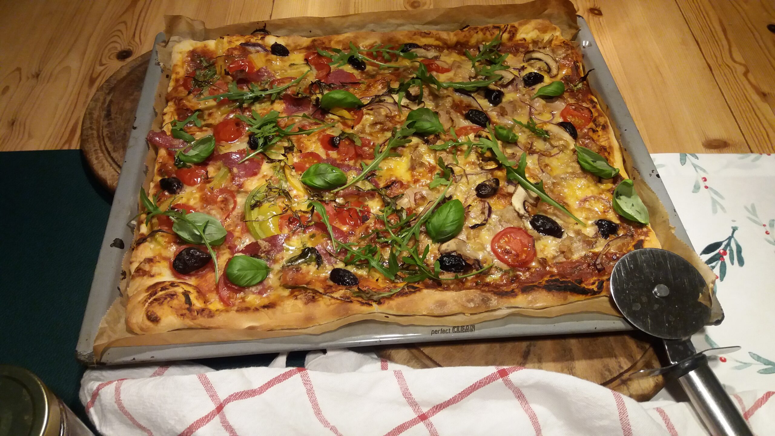 Lecker!!! Nichts ist übrig geblieben… und reicht wirklich für zwei Runde Pizzen. Morgen genießen wir die 2. Vielen Dank für unseren neuen lieblingsPizzaTeig!!!