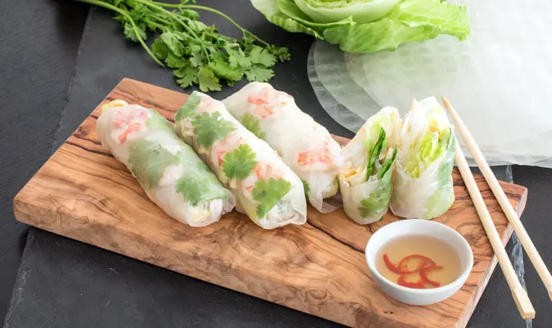 Allerdings können sie auch wild gefüllt werden, ob mit Karotte, Mango, Avocado, Rind und vieles mehr. In diesem Rezept wird zu den Sommerrollen die typisch vietnamesische Sauce „Nước chấm“ gereicht.