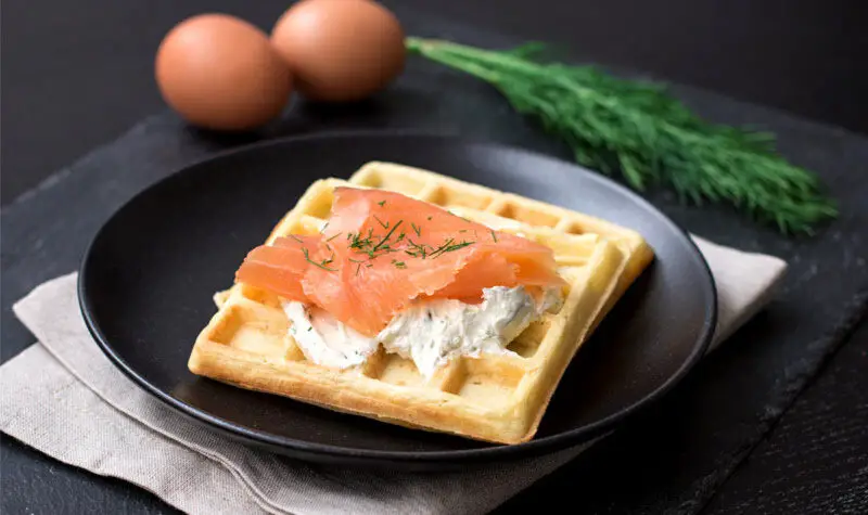 Hefewaffeln sind nicht sehr süß und eignen sich deshalb optimal für herzhafte Speisen mit z.B. Lachs und Frischkäse. Durch den Dill erhält das Gericht noch einen tollen unvergleichbaren Geschmack. Das Besondere hierbei ist, dass es als tolles Frühstück, kleine Hauptmahlzeit, aber auch als Abendessen geeignet ist.